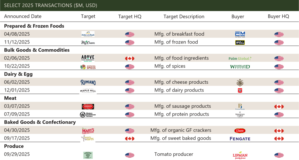 North American Food Sector M&A Transactions [1], [2] 2019-2025